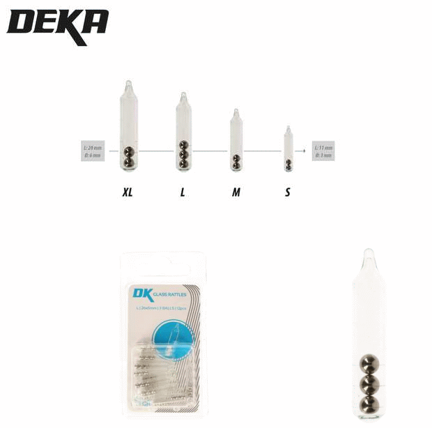 DEKA Glass Rattle - Anzahl der Stahlkugeln, Länge und Durchmesser