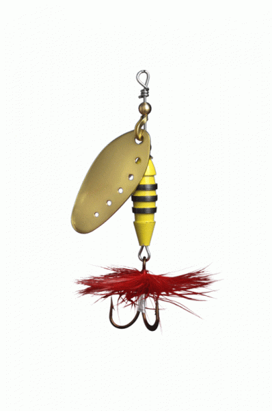 Der Weitwurfspinner aus Schweden! Wie der Myran Toni und Toni-Z hat der Sting einen insektenförmigen Körper und die Myran "Sonic Sound Construction". Der Körper ist gelb-schwarz . Die Spinnerblätter gibt es in silber,gold,kupfer und schwarz.
