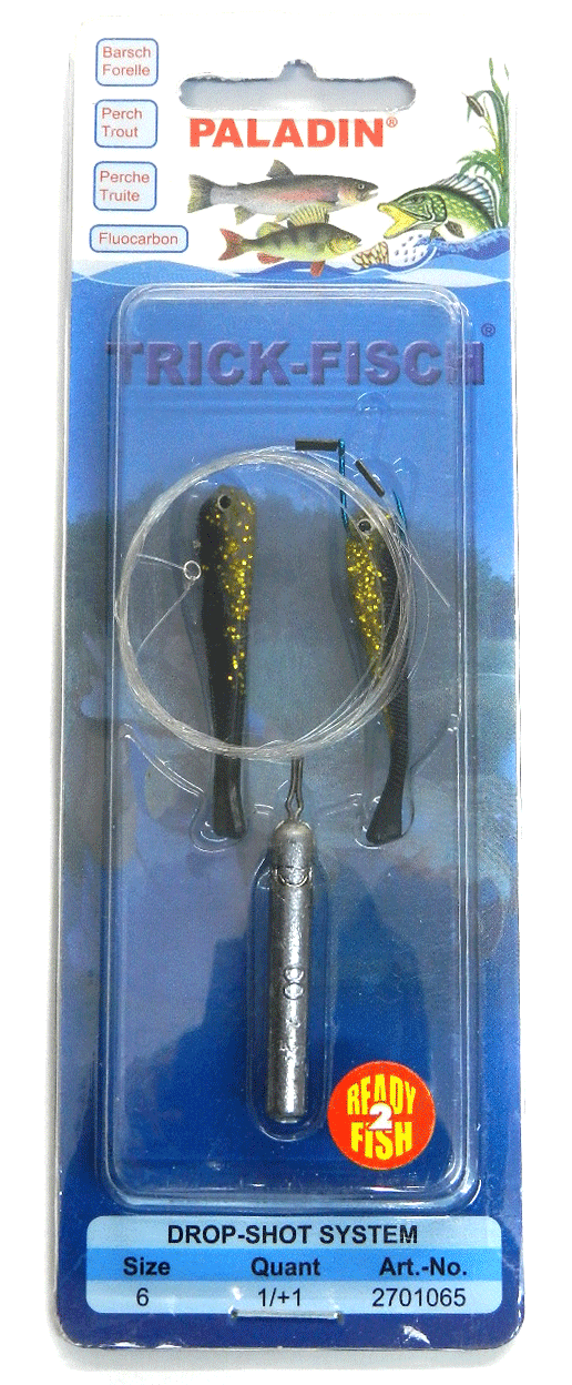 Für alle Paladin Drop Shot Vorfächer werden japanische Maruto Haken an 150cm Fluorocarbon Schnüren montiert.
