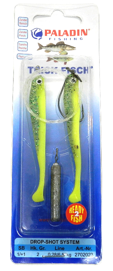 Für alle Paladin Drop Shot Vorfächer werden japanische Maruto Haken an 150cm Fluorocarbon Schnüren montiert.